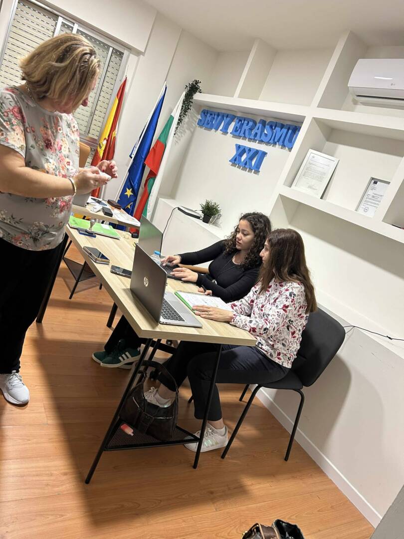 Пътуването започна с отпътуване от България и пристигане в Испания, където участниците бяха посрещнати от партньорската организация. Още в първите дни учениците се запознаха с програмата на мобилността, графика на дейностите и работните си места. Срещите с приемащия екип преминаха в конструктивна и професионална атмосфера, което допринесе за бързата адаптация на участниците.